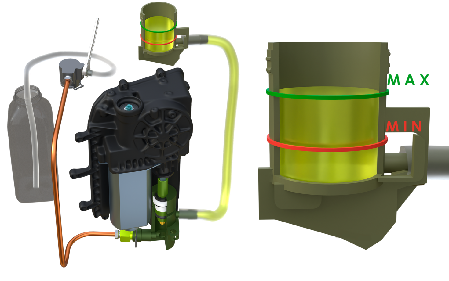 | Резервуар | Окремий (на блоці) | Спільний з гальмами |
